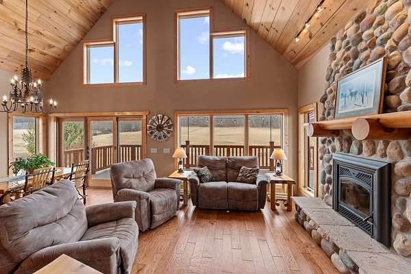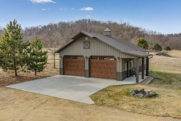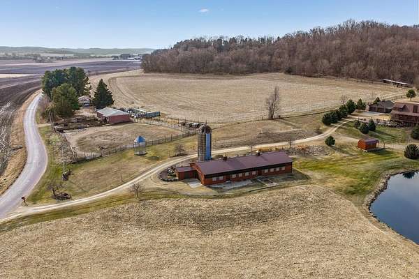 Sauk Prairie School District. Discover timeless craftsmanship and refined country living at this North Woods–style post-and-beam home on 58.64 serene acres. Built in 2010, the 3 BR, 2.5 BA, 2,100 SF residence showcases cedar siding, vaulted ceilings, a loft, propane heat, lite speed Fiber Optic internet, drilled well, and at-grade septic. Enjoy scenic views, trophy deer, turkey. Outbuildings include a 30’x40’ insulated Cleary garage (2021; finished 2024), 118’x36’ remodeled storage building (2023), 24’x12’ powered cabin (repainted 2025), 11’x22’ electrified loafing shed with waterer, and a 120’x70’ lighted riding arena (2017). Land features woods, marsh, pasture, 27 acres of alfalfa ($7,425/yr rent), snowmobile & UTV trails, and a stocked pond. A meticulously maintained estate offering privacy, recreation, and elegant rural living. See Facts & Features in Docs.