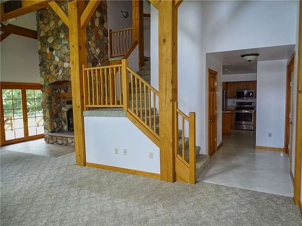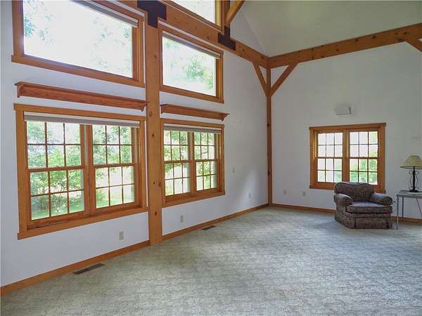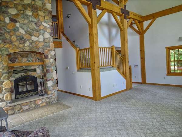 You will love the privacy and seclusion that comes with this custom-built Timber Frame home! This well cared for 4 bed, 2 bath home is set on a picturesque, private and wooded 20 acre lot, and is perfect for the nature lover or hunter. The main floor features a large user-friendly kitchen, dining area that steps out to the deck, laundry room, bedroom/office, and living room with vaulted ceiling, woodburning fireplace, and large windows for plenty of natural light. Upstairs you will find a large master suite that opens to a private deck, and 2 additional bedrooms and a large bathroom. Other home features include energy efficient Geo thermal heating and cooling, central vac, and Lutron Scene Control lighting. Enjoy your recreation time outside as well with a covered porch, back deck, and a large 26X34 finished garage with 12X34 storage area above. This property is in the perfect location: just minutes from Eau Claire, Durand, Mondovi, and Menomonie. To much land? Check out MLS#1594768