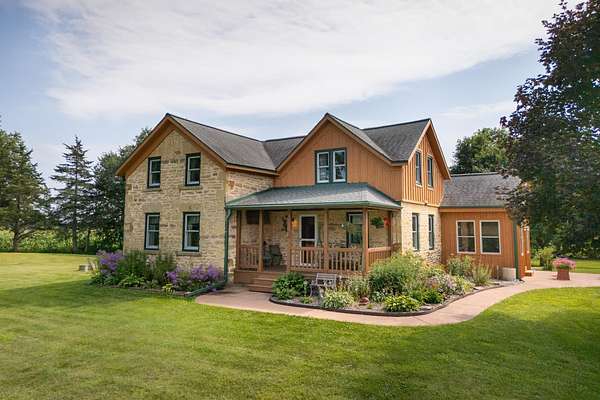 Est $3,368/moStraight out of a storybook, this rebuilt 2.30-acre home perfectly blends rustic charm with modern updates. Highlights include vaulted wood-beam ceilings, exposed stone walls, sunlit living room with gas fireplace, and two decks with stunning views. Stroll among maple & apple trees, grapevines, a newer heated barn, and three additional outbuildings. Sauk Prairie Schools, 10 min from town. Seller offering up to $5,000 toward buyer's closing costs with a new accepted offer by 11/20/25.