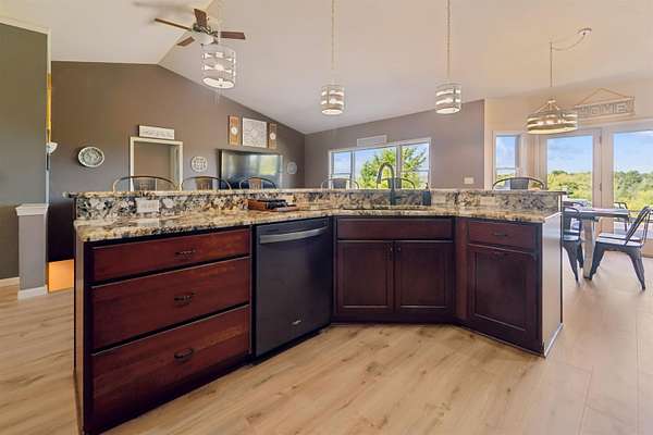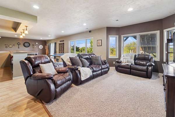 Excellent Location! Country Paradise! This expansive 3640+/- sq ft walk-out ranch on 9.13+/- acres offers it all! Enjoy a kitchen with granite counters, a large island, and a pantry. The spacious dining area provides deck access and great views. Cozy living room. The primary suite is a retreat with a tiled shower, soaking tub, and dual vanity. Main floor laundry with huge storage closet, 2 additional BDS with shared full bath, office and 1/2 bath complete the main level. The lower level is perfect for entertaining boasting a huge rec room with a wet bar and walk-out access, 2 more BDS and 1.5 bathrooms. A 3.5-car heated garage with a tandem stall for a 4th vehicle, a fenced yard, wooded backdrop, and storage shed complete this incredible property.