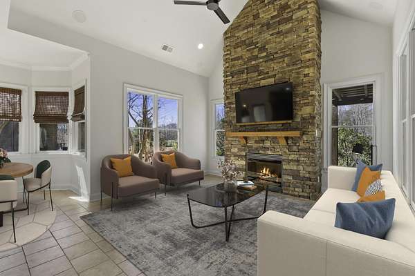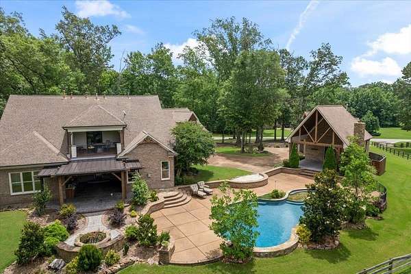 New price on this incredible home. Incredible opportunity for the space, guest house, pool setting and views that this property offers. 105 Aston Cross is where elegance meets resort-style comfort. At 6290 total sqft, this stunning custom-built craftsman home offers panoramic walking trail and lake views, specially finished teak floors, and a bright, open-concept design. Now with a brand new roof as well! Designed for both refined living and grand entertaining, the home features a private pool and waterfall hot tub, an outdoor kitchen and fireplaces! Detached guest/pool house has private garage parking, porch w/fireplace, living room, 2 bedroom spaces (one doesn't have closet), full bath and kitchenette area. Covered porches provide seamless indoor-outdoor living, while the serene setting in Fayette County ensures privacy and exclusivity. The setting and views are unbeatable for entertaining and enjoying. Heated and cooled sqft includes guest house. Brand new roof!