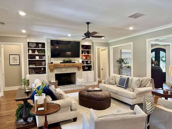 Hidden Gem a Beautiful Estate Home in Shelby County Enjoy Open floor plan with all the amenities you would expect 10 ft ceiling down nail down hardwood 52" wood burning fireplace in Family Room with gas logs Dream kitchen with Tons of cabinets and large 8' Island Open large Dining Rm Easily accommodate at table of 10 or more for those Family Gatherings Crown molding thru out downstairs Large Owners suite & luxury bath with walk thru shower, his & her separate vanities and closets Beverage/coffee bar in Owners Suite. Enjoy entertaining in the 20x21 outdoor covered patio with Stone wood burning fireplace. 2nd brm down with private own suite 2nd laundry room up (W&D included) for the 3 bdrm 2 bath up & Large Game room / Media room wired for surround sound Custom Iron Double Front doors & Friends Entry Door. See list of Upgrades Beautiful view on the back yard Just relax feed the deer and watch the abundance of wildlife from your patio. (No City Taxes).