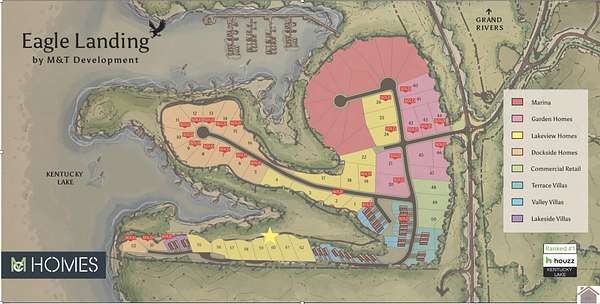 In Grand Rivers at the intersection of Hwys 952 and 453 (Dover Rd) Go .75 miles until you see the sign for Eagles Landing on the right. Turn right and then take a left on Eagles Rest Rd and lot 60 is on right.