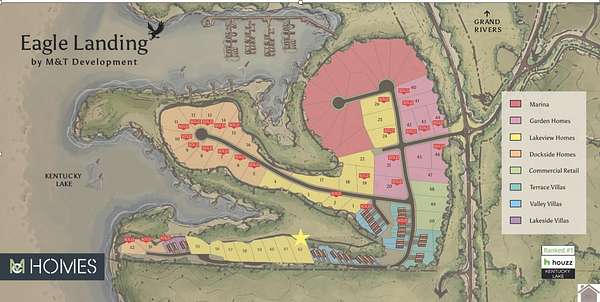 In Grand Rivers at the intersection of Hwys 952 and 453 (Dover Rd) Go .75 miles until you see the sign for Eagles Landing on the right. Turn right and then take a left on Eagles Rest Rd and lot 62 is on right.