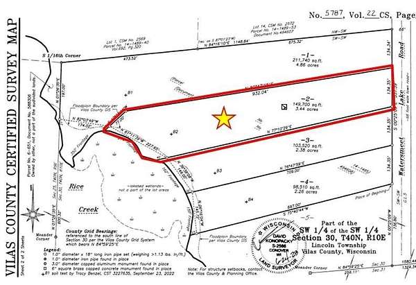 This property has something for everyone! 1) Situated in a quiet neighborhood with breathing room between the houses, there is plenty of privacy. 2) With 3.4+ acres and a whopping 227 ft of frontage on Rice Creek it affords serene water views. 3) For those who enjoy the action of bigger lakes, it's located at the mouth of Watersmeet Lake, part of the Eagle River Chain. 4) It's just a few short miles to downtown Eagle River for everyday conveniences. This does have natural frontage where a meandering boardwalk could be utilized but getting on a full rec chain of lakes is getting harder to do these days. Mother Nature isn't making more land so you may want to lock this in before someone else does.