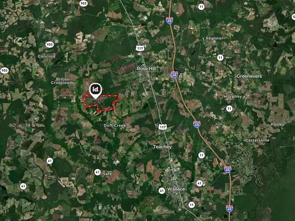 Est $16,912/moRare large-acreage offering in Duplin County! This impressive 700+- acre tract in Rose Hill, NC features over 3,000 feet of paved road frontage and is located just 5.5 miles from Interstate 40, providing outstanding access while still offering privacy and seclusion. The property includes growing timber, an excellent network of interior roads, and diverse terrain ideal for a wide range of uses. Whether you're looking for a timber investment, hunting and recreation, a large farm opportunity, or a legacy tract to enjoy for generations, this property checks every box. A true Eastern NC gem with size, access, and versatility. Property is a portion of Duplin County PID: 11 493