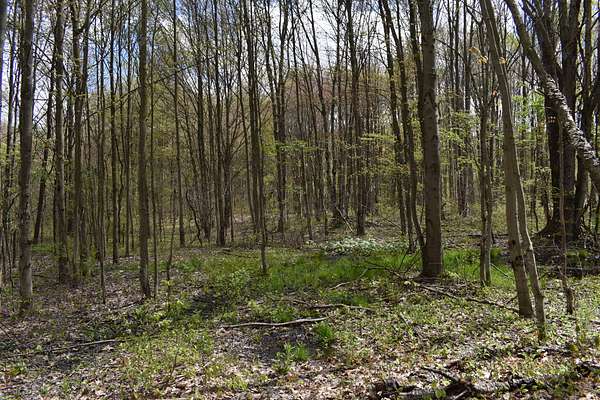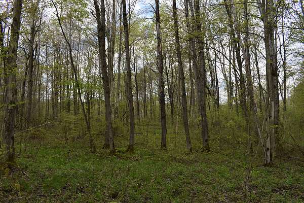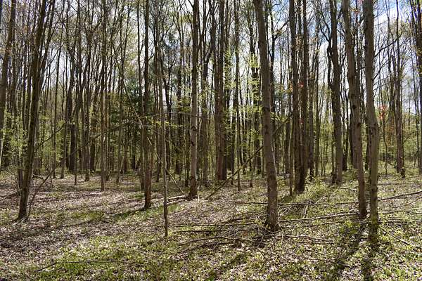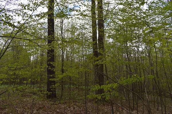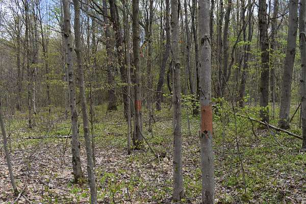 The property is completely wooded with a mix of maple, cherry, beech, birch, aspen and more. There is a combination of managed timber areas along with areas on the west side that are in transition to forest dominated by pole sized trees. The patch open areas in this section are harboring deer bedding and feeding activity. A small intermittent stream flows through this part of the property.