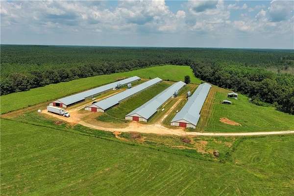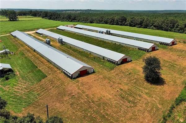 Welcome to this wonderful opportunity to have a turnkey business and homestead in the country. This property offers 4 20,000sf heated and cooled buildings for a total of 80,000sf. This property has most recently been used as a poultry farm with recent upgrades but could also be used for different types of livestock or animals. There are approximately 40 acres and the property also includes an 1100sf homestead. Property also features a generator to run the buildings and 4 1000 gal propane tanks. Land would be perfect for hunting, and plenty of room to bring your horses or cattle. A new survey will be provided with a new legal description at closing for this parcel. There is also a separate adjacent parcel available for sale with an approximate 40 acres that includes a 2700sf home with pool, 6 green houses, large barn with plenty of room for tractors, motor homes and an additional living quarters (5077 Eason Rd). Property is sold as is where is.