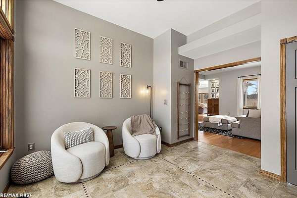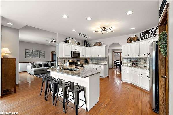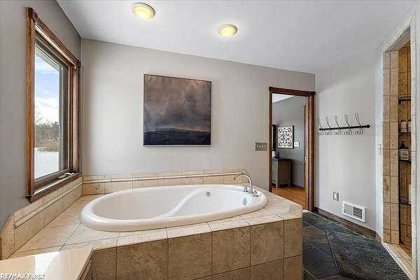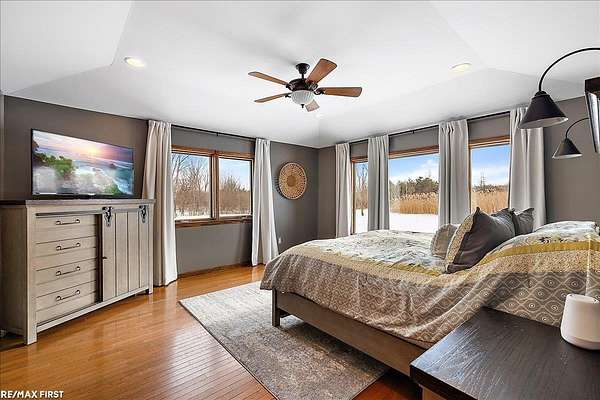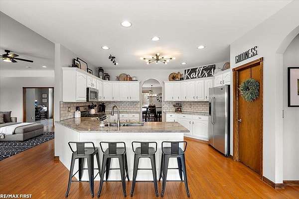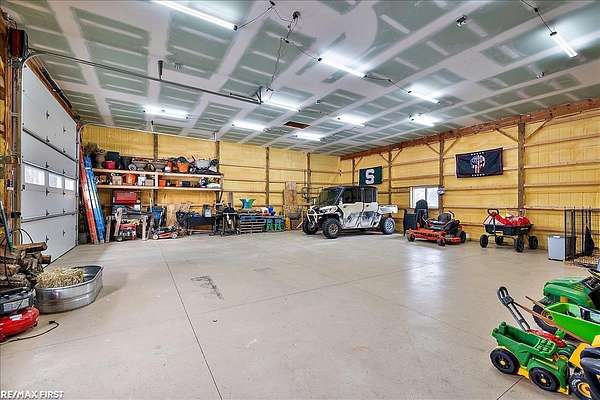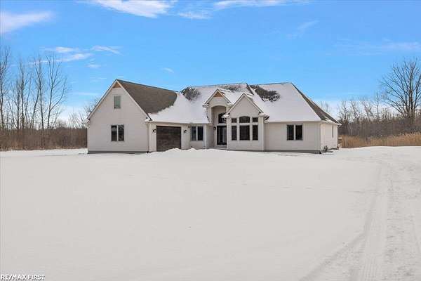 Discover the stunning country retreat you've been dreaming of, complete with numerous upgrades and timeless charm. Tucked deep into the woods on nearly 7.5 acres, this expansive 3,094-square-foot ranch offers an inviting open layout and serene privacy. The impressive 60 x 40 pole barn is a true mechanic's paradise, featuring 220V power, two 14 x 12 doors, a full cement floor, and a converted porch extended with stone. The home is connected to natural gas (NO propane), and the previous geothermal system remains available if desired. Inside, the remodeled kitchen opens seamlessly into the family room, showcasing panoramic bow windows that frame peaceful views of the wooded trails behind the home. The exceptional primary suite includes a jetted soaking tub, a separate walk-in shower, and an oversized closet. The fourth bedroom is currently used as an office, offering great flexibility for your needs. Need more space? The 24 x 12 finished bonus room above the garage provides fantastic additional square footage--perfect for a fifth bedroom, theater room, craft room, or whatever suits your lifestyle. The basement is enormous, boasting high ceilings and endless potential for future finishing or storage