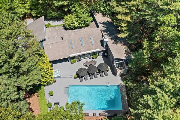 Award winning one level Modern home located in the heart of East Hampton's Northwest Woods! Features include 4++ bedrooms, 4 full and 2 half bathrooms, and a stunning open floor plan with fabulous entertaining spaces throughout. Renovated from top to bottom, the double height great room with fireplace opens to the dining area and striking kitchen with top of the line appliances. A wall of sliding doors makes entertaining easy and provides a seamless flow between inside and outside. The first floor primary suite offers a stunning spa-like bathroom with steam shower, radiant heated floors and a private outdoor shower. The office and den/media rooms provide additional bonus space. The lower level completes this amazing offering and presents a spacious recreation/gym area with half bath. The large exterior dining area with automated awning abuts the heated pool, hot tub, two outdoor showers, fire pit, and professionally landscaped grounds. Plus there is an oversized two car detached garage. For those who enjoy a sense of design and style, this home has it all!