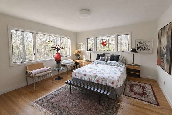 Estate sale Post Modern, custom built on 2.5 Acres in 1990. This is when Mid Century Modern jumped to Post Modern, claiming traditional Hamptons Saltbox volume. With 2.5 square acres, it's offered close to land value, this home is a well considered investment to live in. Never rented, low impact use and very well cared for. First Floor owner suite, formal dining room, original eat-in kitchen with Happy Days breakfast nook. Full Bath and separate laundry room off the centerpiece great room with a den that has a fireplace. Upstairs are two more guest rooms and two additional full bathrooms. Add a well-lit artist studio and an office, easily closed up for additional bedrooms. Bring your own MCM motif to match the original jacuzzi bathroom suite. The length of the house has glass fronting the oversized pool surrounded by full entertainer decking. The great room is built for sound, hardwood oak flooring throughout, full basement, late model power plant. Priced to sell, easily expandable, privacy is assured. Never rented, in great condition, appointments only. Some photos had contents removed digitally to show off the architectural lines, and give a glimpse of what it would look like the day of closing. A 'must see'. First time offered ever.