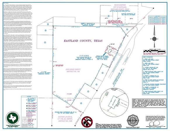 Prime 17.45 acre development opportunity in Eastland Texas featuring approximately 517 feet of highway access road frontage along westbound Interstate 20. This high visibility property offers exceptional exposure along a major east west transportation corridor connecting Dallas Fort Worth to Abilene and West Texas. Positioned next to La Quinta by Wyndham and surrounded by established retail, restaurants, and service businesses, the site benefits from consistent local traffic and strong daily interstate vehicle counts. This Eastland TX acreage offers flexible development potential, subject to zoning and city approval, for a variety of future uses including retail, hospitality, residential subdivision, multifamily, mixed use, industrial, or highway service related projects. Easy access on and off Interstate 20 provides excellent ingress and egress, making the property attractive for investors, developers, and long term land holders seeking visibility and growth potential. Eastland is recognized as a business friendly Texas community offering targeted economic development incentives, financial assistance programs, infrastructure support, and reinvestment zones designed to encourage responsible growth. The city actively supports small businesses, manufacturing, and logistics operations, creating a pro development environment in North Central Texas. A small house situated on approximately 0.25 acre may serve as a residence, rental property, temporary office, or be removed to maximize site flexibility. City utilities are available, and the level topography supports efficient planning and future expansion. This is a rare opportunity to secure large acreage with prime I 20 frontage in Eastland Texas, a strategic and steadily growing market.