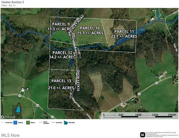 LIVE AUCTION SATURDAY APRIL 25TH! Equipment at 10am * Real Estate at 12 noon. Parcels 9-13. 85 Acres - 5 Parcels - Hilltop Views Discover 85+/- acres offered in five parcels featuring hilltop building sites, excellent hunting ground, pond, fenced pasture, and two barns. A perfect mix of open land and woods-ideal for homesites, recreation, hobby farming, or investment. Parcel 9: 11.3 +/- acres w/ 840' frontage. Open & wooded. Building site Parcel 10: 15.1 +/- acres w/ 860' frontage. Open w/ hilltop views. Barn Parcel 11: 23.7 +/- acres w/ 140' frontage. Hilltop site. Rec ground. Creek Parcel 12: 14.2 +/- acres w/ 764' frontage. Mostly wooded. Barn and pond Parcel 13: 21.0 +/- acres w/ 1318' frontage. Wooded hunting tract