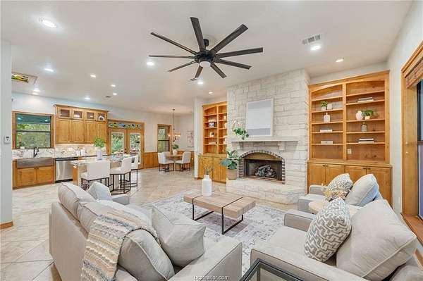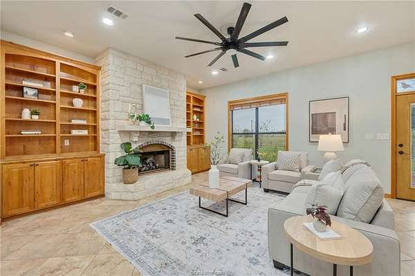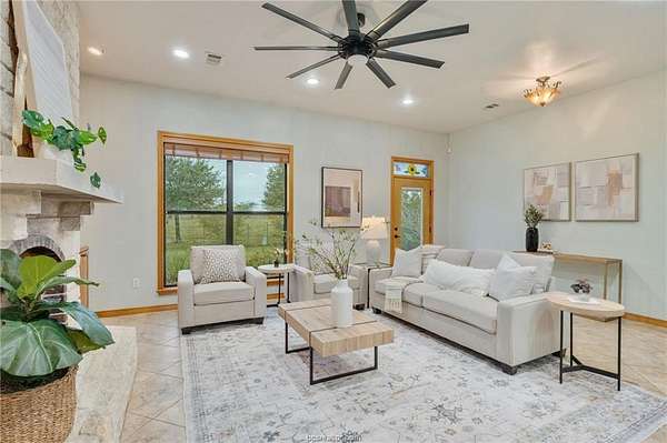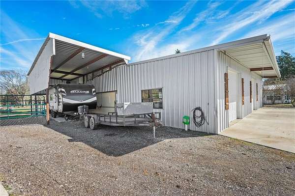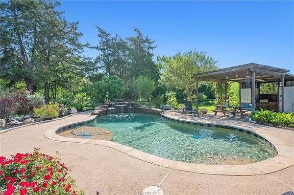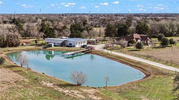 Zoned for Bryan ISD, located in Brazos County, and 30 minute drive to the TAMU campus! Situated on 15 acres in the desirable Edge community, the bountiful amenities include a 4 bed 3 bath custom home, 2024 remodeled pool and waterfall, large shop with RV awning, 2 ponds, green house, and stalls. The home boasts an open concept split bedroom floorplan. Nestled off the master through the French doors you'll find a serene sitting area and porch swing to relax and enjoy your morning coffee. The kitchen features upgraded granite counters with accent lighting that shines up through the granite on the island, as well as stone accents, custom knotty alder cabinets, dual ovens, and a copper sink. The stone fireplace is equipped with gas logs and is the anchor of the living area with the custom, built-in cabinetry on each side. The swimming pool remodel included adding Pebble Tech plaster, new pump, and waterfall. The backyard offers plenty of opportunities for gardening and boasts Wisteria, Racoon Creeper, a variety of roses, Gardenias, Fig Tree, Guam, Little John's, Mountain Laurels, and more. The large shop is equipped with a bathroom and laundry area. The RV awning is approximately 30X50 with a 30-amp plug. The front pond is 30 feet deep and stocked with fish and lily pads (planted in containers). The back pond is creek fed and is stocked with fish too. Good bones updates include: New impact resistant 40-year roof 2024 and Kitchen Fridge 2024.