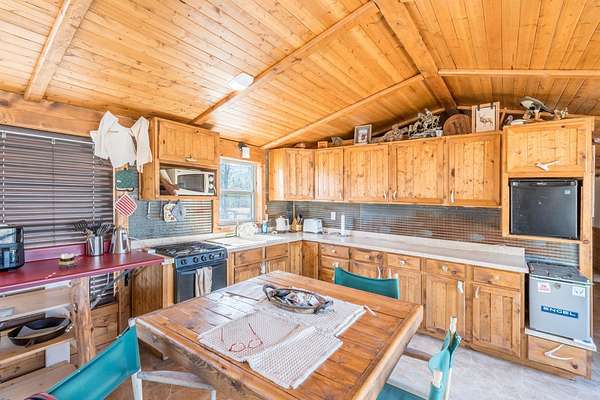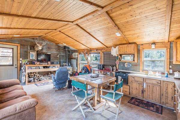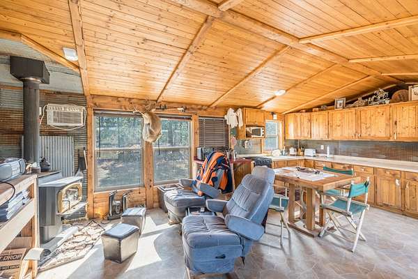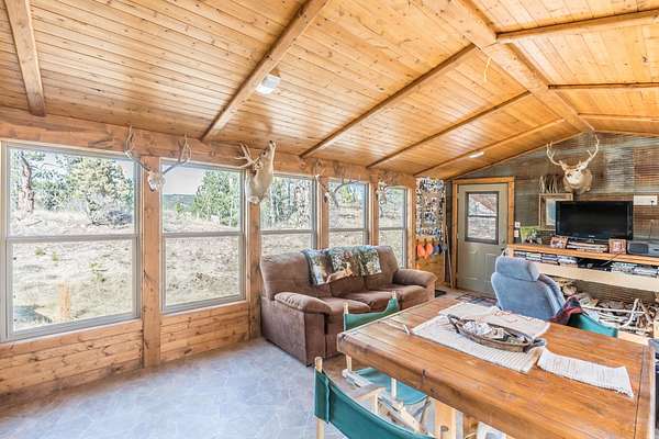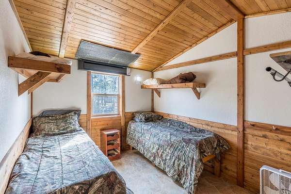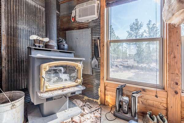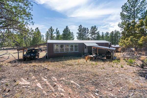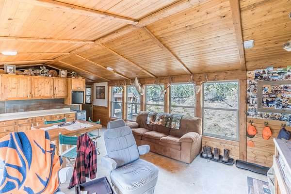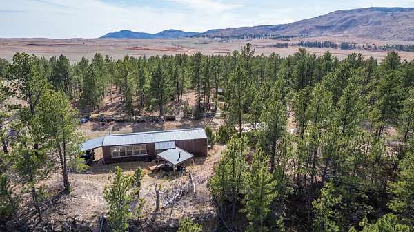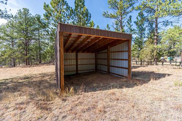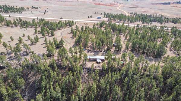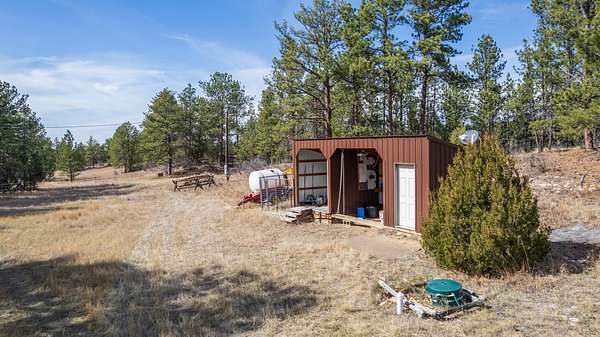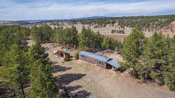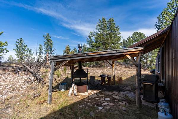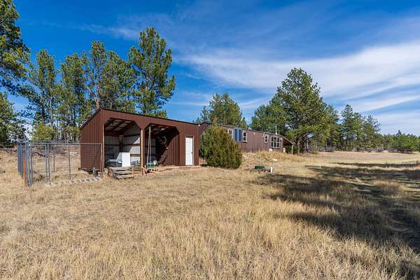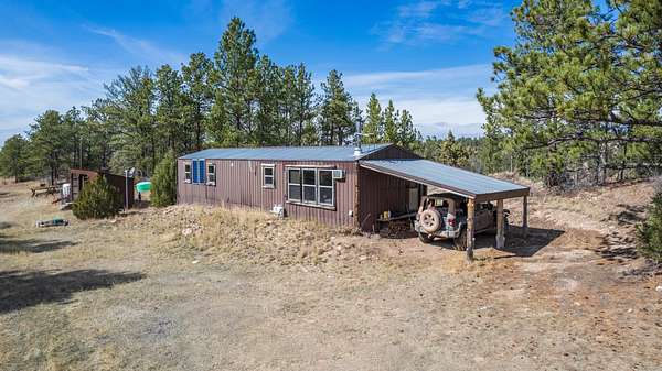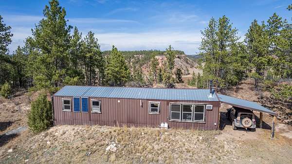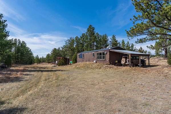 Rare Hunting Base Camp with Easy Highway Access! Calling all hunters and outdoor enthusiasts! This remote, rustic retreat is the perfect base camp for hunting season or if you are just wanting a Black Hills hideaway retreat. Nestled in an area teeming with wildlife just 3 miles east of Wyoming, this property offers everything you need to make the most of every season. The 2-bedroom, 1-bath manufactured home provides a solid starting point for those looking to invest in some beautiful Black Hills ground. Bunk up with your hunting crew and stay warm and comfortable with a wood-burning stove, while enjoying the convenience of 12-volt lighting powered by solar panels. It does have 50-amp service for all of the outlets and water heater. The property is completely fenced with three sides bordering a multi-generational ranch. An attached carport and two additional storage sheds, one with a half-bath and 30-amp service, give you plenty of room for ATVs, tools, hunting supplies, and more. Easy highway access means you can get in and out quickly. Whether you are looking for a weekend hunting retreat, a remote getaway, or a place to build your dream home, this property checks every box. This property is on a cistern and septic system.