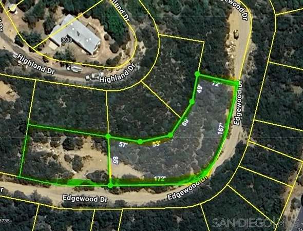 Two parcels equalling .85 of an acre. In Kentwood in the Pines, a residential community just minutes from downtown Julian, Cuyamaca Lake, hiking, riding and biking trails. Access the property from Edgewood Dr., follow a path to a clearing, where you have a view of the tree covered hillside. Design your dream home nestled in native manzanitas, overlooked by majestic Coulter pines, dotted with wild flowers in the spring. A place where you can gaze at the hills, watch as wildlife passes by during the day, and sit beneath a canopy of stars at night. The neighborhood has access to power through SDG&E, and water is metered through Majestic Pines mutual water district. Buyer to invesitgate buildability, and access to utilities.