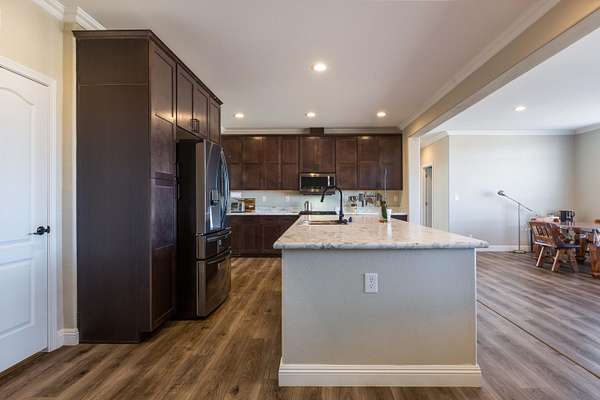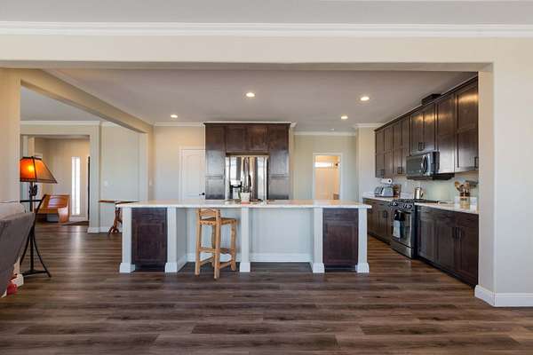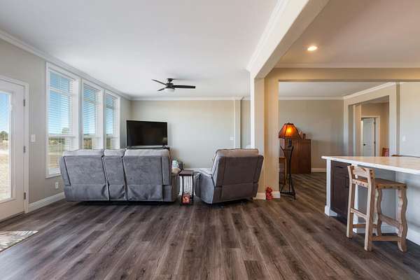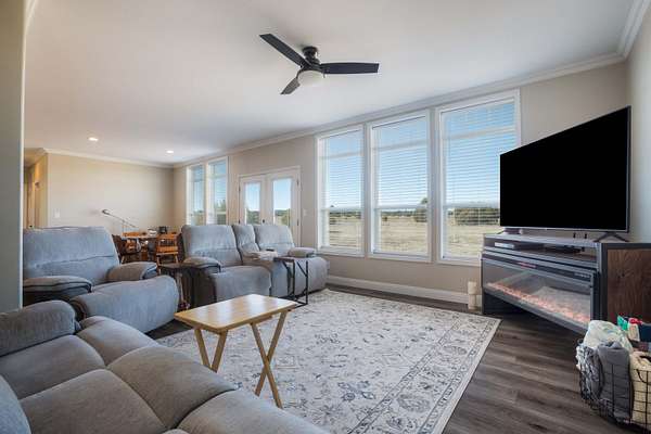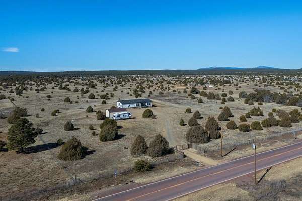 LIve the country life at it's best! This spacious 4 bedroom 3 full bath home on 5 acres offers space, privacy and great views. Abundant natural light fills the home. 9 foot ceilings in Great Room/Kitchen & more. Enjoy your morning coffee on the front deck. The kitchen is spacious and has an eating bar. Modern appliances. Great sunsets viewed from the living areas. The electric fireplace in the primary bedroom does not stay. It's approx 11 minutes to I-40. Karsten Encore model was priced at $449,000 - 1939 sq ft land home package so this is a great value and a triple wide. Lots of bird, deer and wildlife in the area. Well docs show a great yield. Garage is 24 X 30 with shop space. Siding is Hard Board. Central NM Elec Co-op is the electric provider and serves a very large area.
