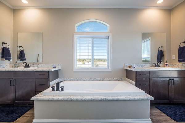- Breakfast Bar, Ceiling Fans, Dual Sinks, Entrance Foyer, Garden Tub Roman Tub, High Ceilings, Kitchen Island, Living Dining Room, Main Level Primary, Multiple Living Areas, Pantry, Separate Shower, Utility Room, Walk In Closets, Water Closets