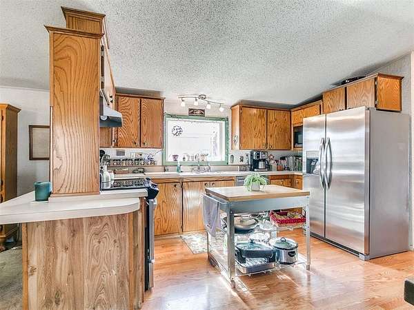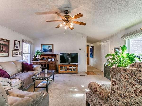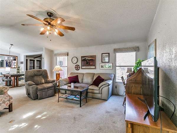 Welcome to 4327 Cardinal in Edmond, where space, versatility, and opportunity meet on 1.53 beautifully usable acres, offering the freedom of country living just minutes from Edmond amenities. The property features a well-maintained manufactured home permanently anchored to a concrete foundation with a brick exterior for added durability and curb appeal. A handicap-accessible ramp at the rear of the home adds thoughtful functionality and ease of access. The home features 3 bedrooms, 2 bathrooms, newer carpet in some areas, a new Broan vent hood, new HVAC/furnace, newer electric stove (Seller believes it is plumbed for gas if you'd like to change), water softener and a nice Bosch dishwasher. A built-on office with a wood-burning stove and new metal roof provides ideal space for remote work, a small business, or a flexible studio area. Multiple outbuildings enhance the property's versatility, including a shop, an additional barn building (seller believes it is also plumbed for gas), and a separate two-car garage, offering excellent options for storage, hobbies, equipment, or workspace. With ample room to expand, garden, park recreational vehicles, or simply enjoy wide-open space, this property offers privacy and flexibility rarely found in Edmond. To further enhance value, the seller is offering a $5,000 credit toward flooring or buyer-selected upgrades, allowing the next owner to personalize the property. Much of the existing furniture may also remain if desired. Whether you're seeking a peaceful homestead, a work-from-home setup with land, or a property with investment potential, 4327 Cardinal delivers space, function, and value that's increasingly hard to find.