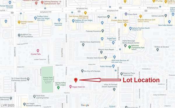 Est $1,771/moHalf Acre Lot For Single Family. Close To The Famous Las Vegas Strip! Hidden In A Quiet Cul De Sac Behind Busy City Life. Block Walls On All 3 Side Of The Lot. Less Than 1000ft To A Park And Elementary School. Very Close To Decatur Blvd. Zoning Is Single Family Residential. Could Be Potentially Change To R3-Multi Family Zoning Per Clark County Comprehensive Zoning And Planning Department. No HOA. Google Map GPS Coordinates 36.139610, -115.211621 (Major Cross Streets: Sahara/Decatur)