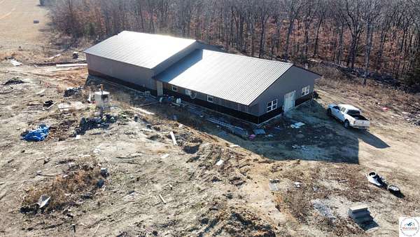 Private 100+- acre property featuring a nearly new home built in 2022. This 3 bedroom, 2.5 bath residence offers metal siding and a metal roof for low-maintenance durability as well as SIP walls providing a strong base and R26 insulation to keep the home well heated and cooled. The home features a spacious open-concept kitchen and living area with excellent natural light and functional flow, along with two 6' x 50' porches on each side of the home--ideal for enjoying the peaceful surroundings. Finish this home to your exact taste, the heavy lifting has already been done! The land offers a desirable mix of open ground and timber, well suited for recreation, hunting, and outdoor enjoyment. Accessed by a private drive, the property provides a quiet and secluded setting. A private runway located on the property offers a rare opportunity for aviation enthusiasts. The property also includes a 60' x 50' shop that is set up for an airplane hanger with plumbing in place for a future apartment and plumbed for heated floors, offering excellent versatility for storage, workspace, or expansion. An excellent option for those seeking privacy, recreational acreage, and a well-built modern home in a rural setting.