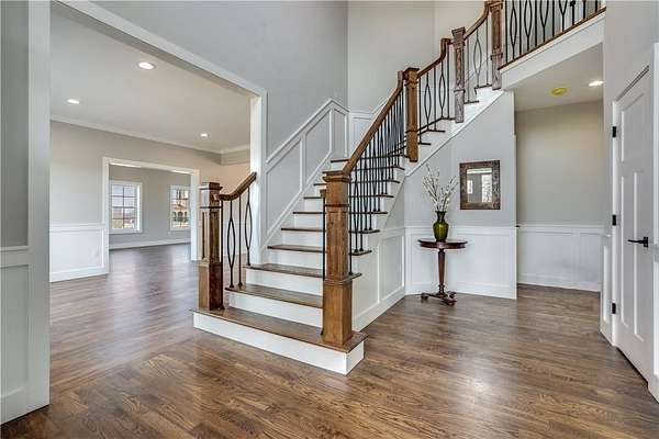 TO BE BUILT! Adams model, a 4,317 SF contemporary Colonial-style home. Reputable, local builder offers specifications including, but not limited to: 4/5 bedroom 3.5 bath floorplan include 9' first floor ceilings, great room with vaulted ceiling, an expansive open concept kitchen area/family room, a natural light-infused conservatory, 36' gas fireplace, front and rear staircases, office/den, master bedroom with wetbar and viewing balcony, tray ceiling, second floor laundry, walkup basement with rough-in plumbing for additional full bath and kitchen, black exterior windows and 3 car garage. Energy efficient infrastructure elements, seamless gutters, red oak hardwood floors throughout with the exception of the bedrooms, laundry and baths. A rear patio, full blacktop driveway, landscaping package and much more. Photos shown are of the actual home built. Municipal water and sewer, natural gas heat. Call and request the specs. Additional Information: Amenities:Pedestal Sink,Storage,ParkingFeatures:3 Car Attached,