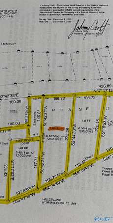 First-Time Offered! Rare Oversized Recreational Lots on Weiss Lake - Cedar Bluff, AL Now available for the first time-these recreational lots are larger than the typical lake getaway spot! Enjoy expansive views of Weiss Lake and the peaceful open spaces surrounding it. Utilities available through Cedar Bluff Utilities Endless possibilities for your RV, lake retreat, or weekend escape Permits required for any improvements through Weiss Lake Shoreline Management (Alabama Power Division) Your private piece of Weiss Lake is waiting-build your ideal recreational retreat today! BUYERS TO VERIFY ALL INFORMATION.