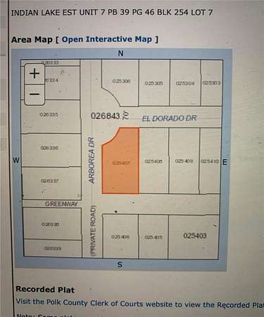 BUILD YOUR DREAM HOME. Oversized corner , located in a quiet and a salute street in a lake community of Indian Lake Estates. Enjoy a golfing, fishing and boating community in the center of Florida. Polk County's best kept secret! If you want to enjoy Florida living at its best, this is where you want to invest! Just 20 miles east of Lake Wales. The community surrounds the 7,500 acre lake locally known as Lake Walk In Water. Nationally known for its fishing and considered to be one of the best bass fishing lakes in all Florida. The lake has a beach, boat ramp, boat marina, pavilion and the longest freshwater fishing pier in the State of Florida. The pavilion is located at the front of the pier and is complete with propane grills and covered picnic tables. The community amenities include an 18-hole golf course, basketball and tennis courts, clubhouse, cafe, post office, churches, library, fitness room and pro shop.