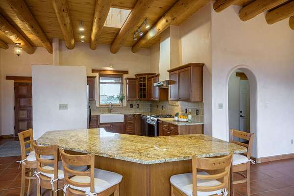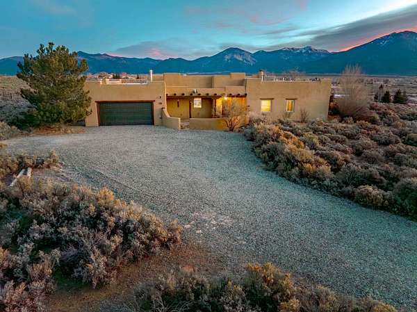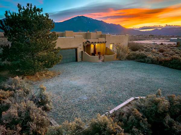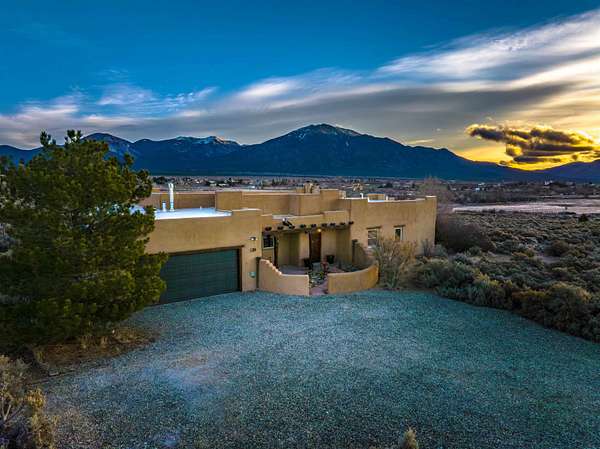 Charming Southwest-Style Home in Blueberry Hill Experience the warmth and character of this beautiful home, built with adobe construction and featuring a cozy wood-burning fireplace in the living room. The exterior has recently been updated with fresh stucco, enhancing its curb appeal. The open-concept living and dining areas create a welcoming space for daily living and entertaining. The updated kitchen boasts granite countertops and a picturesque view from the kitchen window, perfect for enjoying morning coffee or simply taking in the stunning mountain scenery. The front covered portal welcomes you home, complemented by a lovely garden walkway that adds charm and tranquility. The rear patio provides an ideal setting for outdoor gatherings while soaking in breathtaking mountain views-an incredible backdrop for relaxing, dining, or entertaining guests. The property also features an attached 2-car garage, providing convenient parking and storage. Located in the highly desirable area of Blueberry Hill, this home is close to Taos Ski Valley, shopping, and dining at the historic Taos Plaza. Whether you're seeking a full-time residence, a part-time retreat, or an income-generating investment property, this location offers versatility and appeal. Contact Cyndi today to schedule your private showing and discover all that this charming property has to offer! DRONE VIDEO LINK: