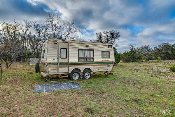 Turn the key and start hunting-this 24.02-acre property in Freedom Ranch is ready to go from day one. Located between Eldorado and Menard, this setup was built for convenience, comfort, and time well spent outdoors. The property comes fully equipped with a 1986 camper that's been updated in recent years, along with an 11,500-watt generator housed in a covered shed and a 300-gallon above-ground septic system already in place. A shared water well is located just around the corner, adding even more convenience to the setup. Everything about this place is designed for the hunting experience. You'll find a 5x8 Antler Shed deer blind, two all-season 55-gallon feeders, a dedicated shooting range area, and a skinning and processing deck ready for use. A 10x16 metal storage building provides plenty of space for gear and equipment. The area is known for its abundant wildlife, including axis and whitetail deer, turkey, pigs, fox, dove, blackbuck antelope, quail, and even the occasional aoudad. Please note: A second camper (2022 Springdale) shown in photos does not convey but may be purchased separately if desired. Whether you're looking for a weekend escape or a reliable hunting spot, this property makes it easy to show up and enjoy. Check out the video on YouTube by searching 1335 Ocelot Road, Eldorado, Tx