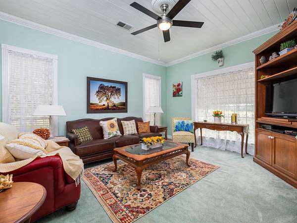 - Bar, Breakfast Bar, Ceiling Fan(s), Ceiling-Vaulted, Chandelier, Crown Molding, Double Vanity, Entrance Foyer, Kitchen Island, Multiple Living Areas, Natural Woodwork, Quartz Counters, Soaking Tub, Walk-In Closet(s)