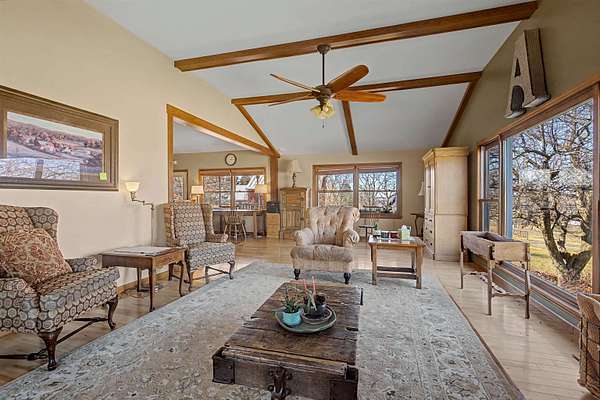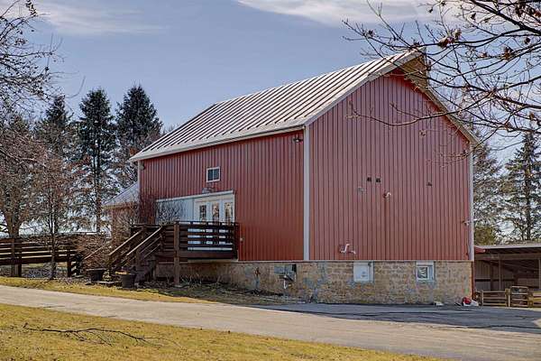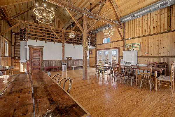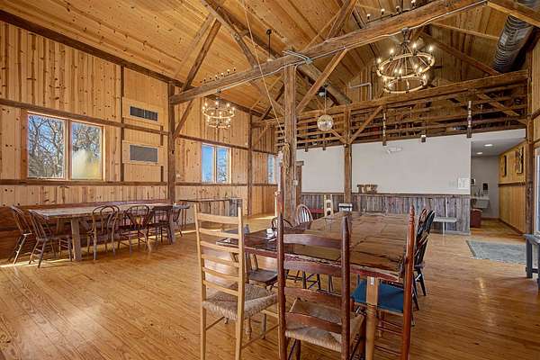 Discover this turnkey country retreat and established agritourism business located on the edge of beautiful Elizabeth, Illinois! A stunning 34 acre +/- estate that blends renovated facilities with rustic charm, guest accommodations with primary residential space, and a diverse terrain and infrastructure sure to suit a variety of uses both commercially and for private use. A winding blacktop lane passes by a nearly two acre stocked pond on the way up to the picturesque farmstead with a stately six bedroom farmhouse, an incredible century old renovated barn, five guest cabins and additional outbuildings and farm infrastructure. Positioned on the high point of the property, the farmhouse overlooks a majority of the property and the panoramic views beyond and features a spacious and open flow main floor, main floor master and laundry, three full bathrooms, and a FULL commercial kitchen more than capable to prepare meals for a large number of guests. The barn has been completely renovated with modern amenities including multiple bathrooms and shower stalls with on demand hot water; yet maintains its rustic charm with vaulted wood clad ceilings, exposed beams, wood floors, and warm lighting. Five guest cabins, each with heating and cooling, can host up to 8-12 camp kids per cabin or can easily be arranged for a more private Farm Stay weekend booking. Other outbuildings and infrastructure include a 90 X 46 heated pole shed, a hay barn, landscape shed, two chicken coops, wood-fired pizza oven patio area, campfire ring, and 1 mile of paved perimeter paths. The acreage is diverse and of rolling contour with multiple pastures and fencing set up for rotational grazing, vast lawn, garden and orchard areas, wooded areas, and nearly 6.5 tillable acres used for hay production. The pond is stocked with Largemouth Bass, Catfish and Bluegill and is accessible around the entire perimeter as well as from a beach area and dock area. The founding owners retirement presents a unique opportunity to take over this thriving Farm Camp and Farm Stay business with all existing licenses in place and a loyal, repeat client base. With favorable and flexible zoning from the Village of Elizabeth, a new owner can build on the existing business foundation, use the property for their own personal country retreat or hobby farm, or put their own entrepreneurial dreams to reality and grow their own agritourism, venue and event, niche hospitality, or other business in a popular destination area near historic Downtown Galena and just a few hours from Chicago. There are not enough words to truly describe all of the features and potential this 34 acre destination retreat has to offer so schedule your own private viewing to see firsthand!