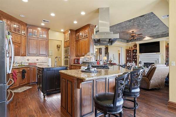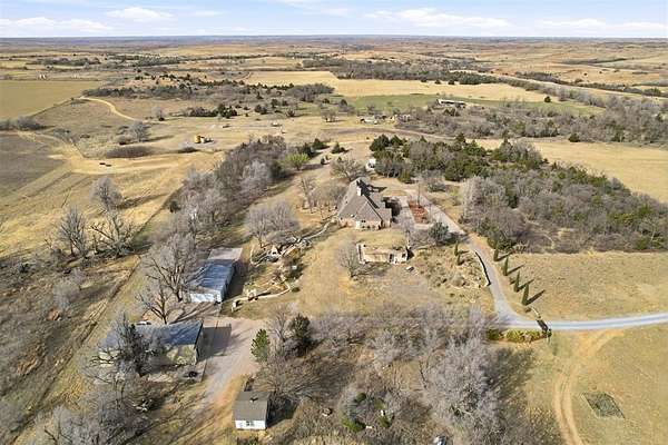 Are you wanting a Peaceful Country Property with plenty of wildlife? This property includes a Custom Built -4 Bedroom, 4.5 Bath home just a few minutes outside of Elk City, Oklahoma, sitting on 320 Acres, mol! In addition, there is an upstairs Family Room room that includes a Bath and a Bar area! Throw in a CHEFS DREAM KITCHEN with a Commercial gas cookstove with 6 burners and divided oven, double ovens, pot filler faucet, granite Island with vegetable sink, large pantry and eating bar for family and friends to enjoy kitchen conversations! This well thought of house plan with no wasted space includes 10'-12' ceilings, custom paint, hand scraped hardwood floors throughout main floor, and gas log fireplace. The Primary Bedroom and Bath is absolutely perfect with double sinks, soaking tub, walk-in shower, and awesome closet! Two of the guest bedrooms share a Jack and Jill bathroom with shower, while the 3rd guest bedroom has its own full bath, that includes the Concrete Inside Safe Room! Other amenities are a 3 car garage, and an additional detached 2 car garage with breezeway connecting to the gorgeous stone and brick exterior home. Easy access to attic area. Outside you'll find a 30x60 Barn, 30x46 Shop with overhead and walk-through doors, a large concrete pad used as a basketball court, small vineyard, whole house Generator, outside Fireplace with cozy seating area, excellent water wells, and tranquility! Possibility of property being sold in separate partials.