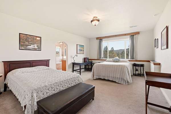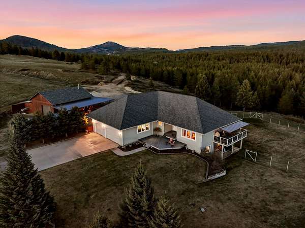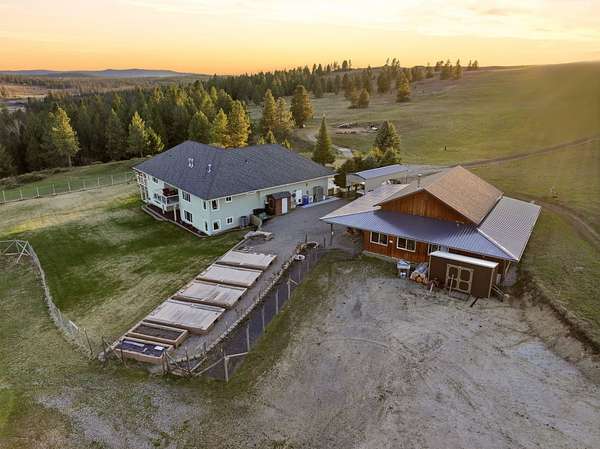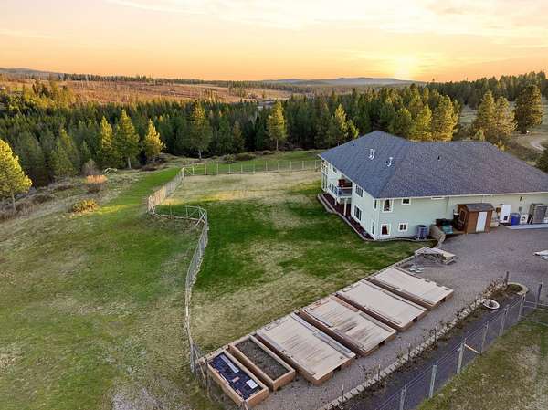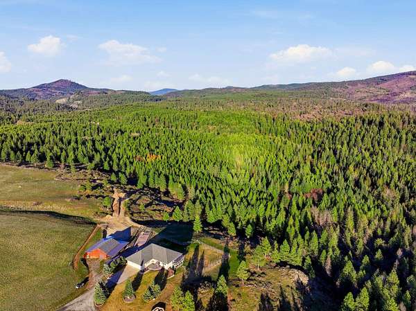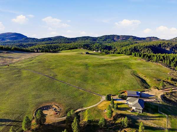 Gated & offering end-of-the-road privacy, this 180-acre property has been thoughtfully developed as a secluded, self-sufficient homestead. The 4,000+ sf home captures unobstructed views of Mt. Spokane from nearly every room & its multiple covered decks and features 3 primary suites, ideal for multigenerational living--along with a daylight basement complete with its own kitchenette. Well-designed storage & top-of-the-line infrastructure is evident throughout. In addition to the 3-car garage, a 2,200+ sq ft insulated & climate-controlled shop w/ventilated firing range add dedicated workspace & storage. Functionality & sustainability can be found with the high-fenced backyard & raised garden bed area. This multi-use property includes open space for grazing, mature timber, a private pond, room for endless recreation, addtl. building sites, & direct access to adjacent public land. Whether you are seeking a private retreat, working acreage, or legacy property, this rare offering has it all.