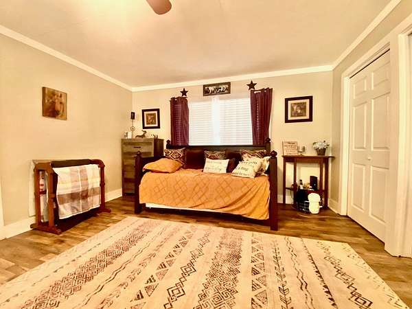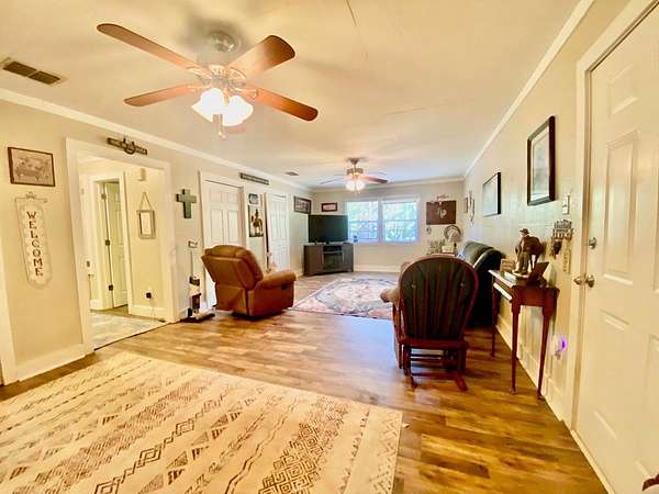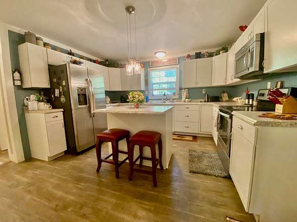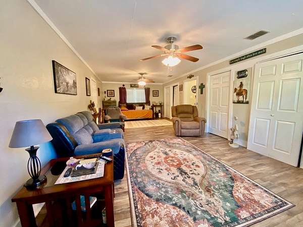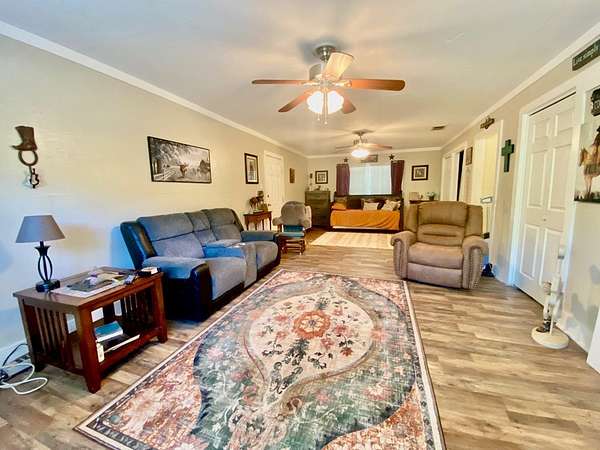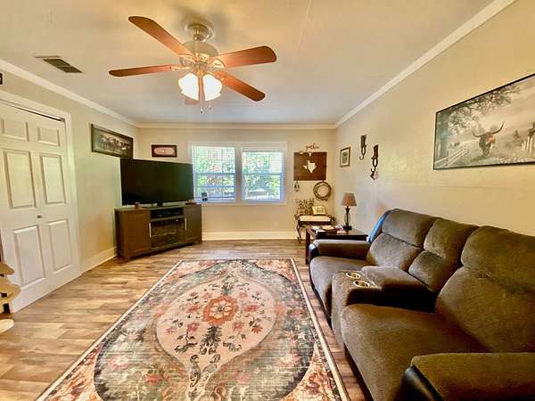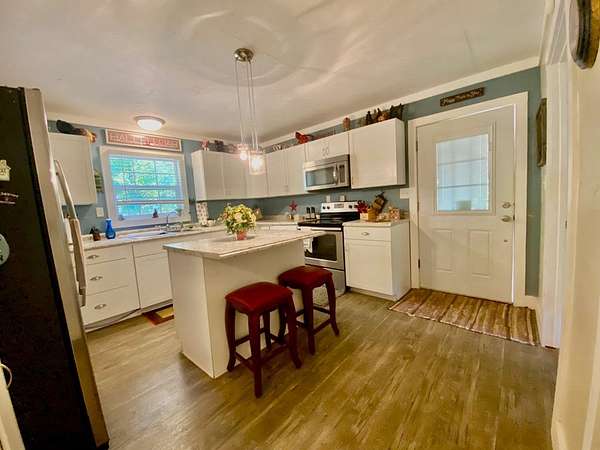 This one bedroom, one bath residence is situated on just over 5-manicured acres and is perched on an elevated hill amongst scattered oak trees. Its scenic views are a welcoming sight which can be enjoyed from the covered porch overlooking the rear of the property. Inside, you'll be impressed by the kitchen with lots of cabinetry, a nice sized kitchen island for preparing meals, and the all-stainless-steel appliances. Just off the kitchen is the primary bedroom which has ample space. Inviting family over will be a must with the large living room perfect for hosting events during the holidays and special occasions. Additional dry storage space is included with the home, which can be accessed from the covered carport or from the living room. So, whether you're a first-time buyer or looking to retire and get away from the busy lifestyle, then give us a call today to schedule a tour of this beautiful home!
