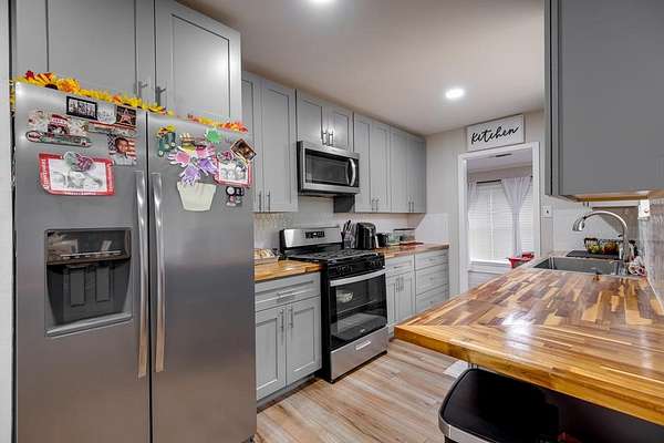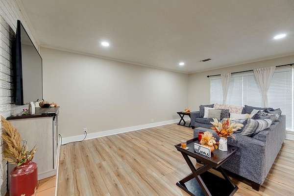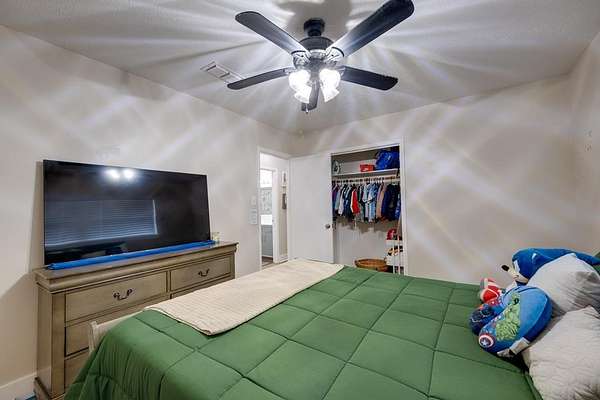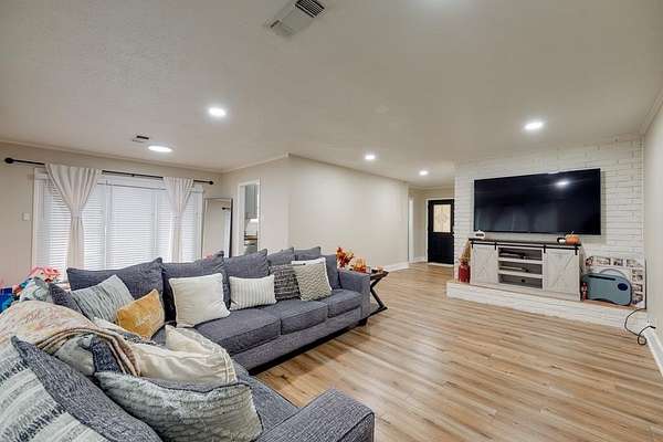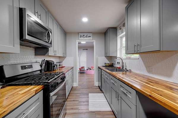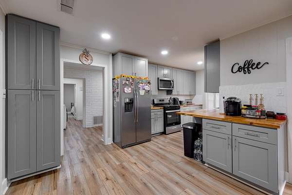 Beautifully remodeled 3-bedroom, 2-bath home on 1.89 acres, located less than a mile from Slocum School. This well-maintained property features energy-efficient windows, a fresh neutral palette, and a spacious layout with an oversized living room and cozy fireplace. The updated kitchen offers custom floor-to-ceiling J&K cabinetry, butcher block countertops, tile backsplash, pull-out pantry, and stainless steel appliances. Generously sized bedrooms plus a versatile bonus room ideal for an office, gym, or guest space. Enjoy year-round comfort with a 5-ton AC unit. Expansive back patio, cross-fenced yard for pets or livestock, and a private water well for added savings. Shown by appointment only. CALL LISTING AGENT 346-774-5544