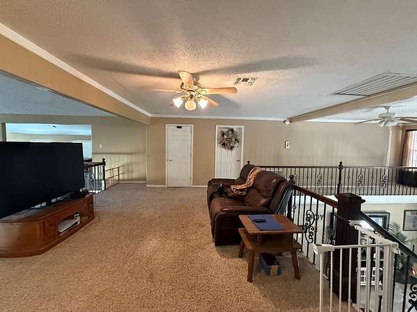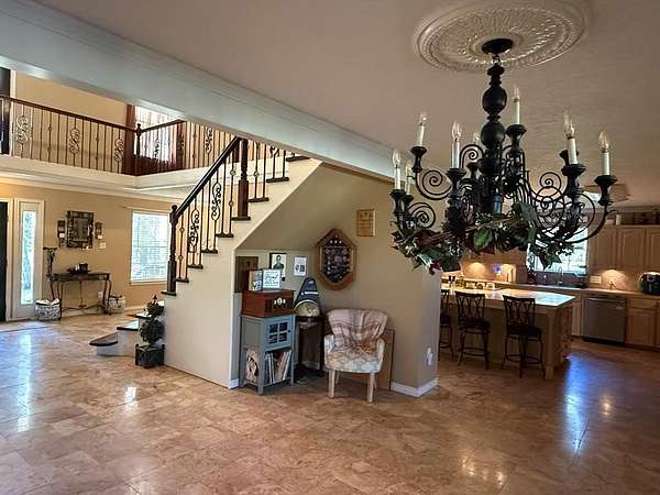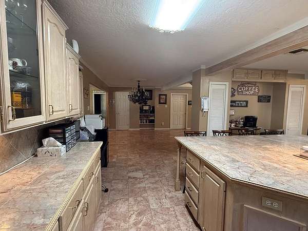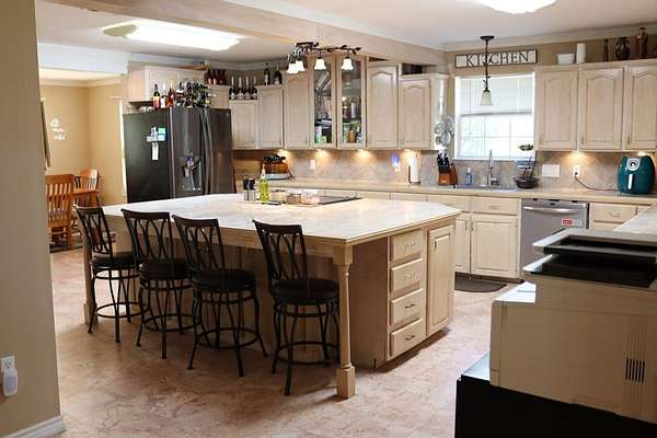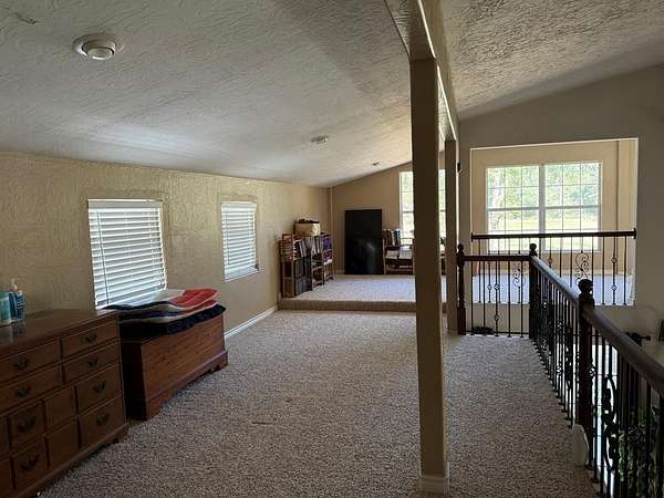 You Don"t want to miss this One !! Welcome to Country Living This lovely two-story Southern-style home has 5 bedrooms and 2.5 baths on 27.97 Acres in the City of Elkhart. Enjoy relaxing on the large covered front or the second-floor covered porch with beautiful views of the property. This spacious living room is truly the center of this Beautiful Home with it's 19 ft ceiling and 725 sq ft. has a gas fireplace and features eight sliding glass doors bringing in lots of natural light. and overlooks the in-ground swimming pool. The kitchen is open and inviting, with custom cabinets, a big island, and marble floors. The master bedroom and bath are downstairs, while four bedrooms are upstairs along with a large open area perfect for additional Bedding ,exercising, workspace, or a TV area. The outdoor living space offers a covered patio, fireplace, and pizza oven, ideal for entertaining or relaxing. The property sits on two 14 acre tracks with 2 ponds and a creek that are not spring feed. Well and Barn with stalls and work area and farm equipment. Additional Building pool house used as outdoor storage due to flooring. has bathroom, sink, extras, with storm shelter. survey come see.