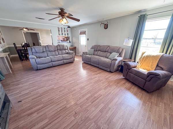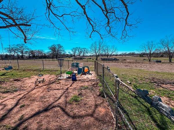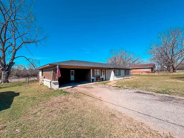 The best of both worlds-Country vibes with city services! Setup your homestead here! 3 Bedroom 2 bath Brick ranch style house on 2.13 acres! Fantastic layout with 2 living areas (one formal living room and a large den that is partially open concept to the dining room/kitchen. Kitchen features Corian counters, peninsula breakfast bar, dishwasher, gas stove & plentiful cabinets. Large laundry room, central HVAC, roof approx 2 years old. Primary bedroom w/ ensuite bathroom. Hall bath with tub/shower combo with built-in cabinets/storage. Attached carport, Backyard has chain link fence and property has perimeter fence for animals. Chicken coop, raised garden beds and storage/hay barn also. Washer/dryer and fridge can be included. So many possibilities here!