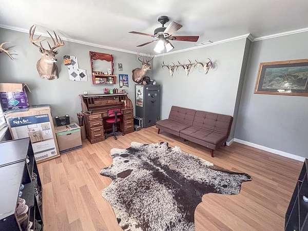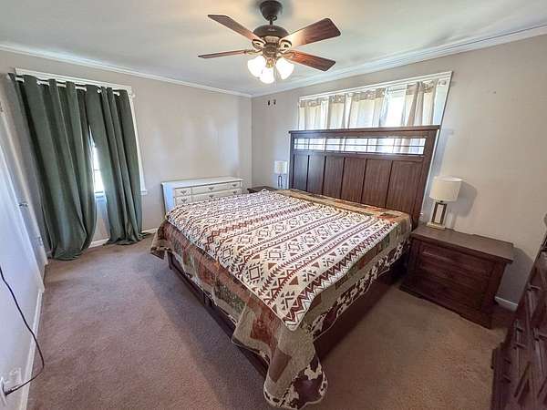 - Blinds, Ceiling Fan(s), Raised Panel Cabinets, Trim/Molding