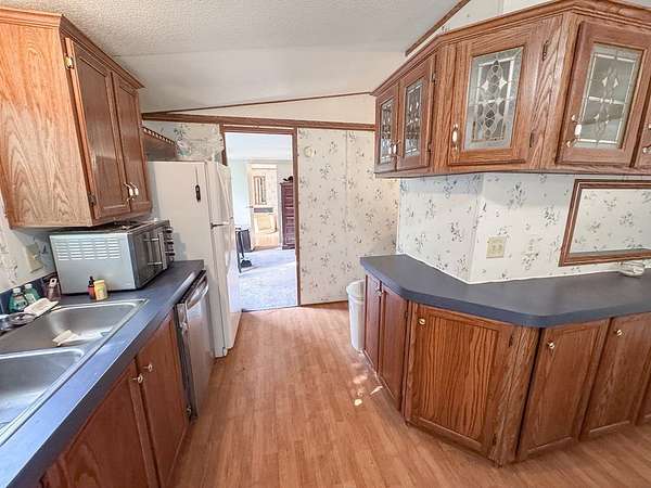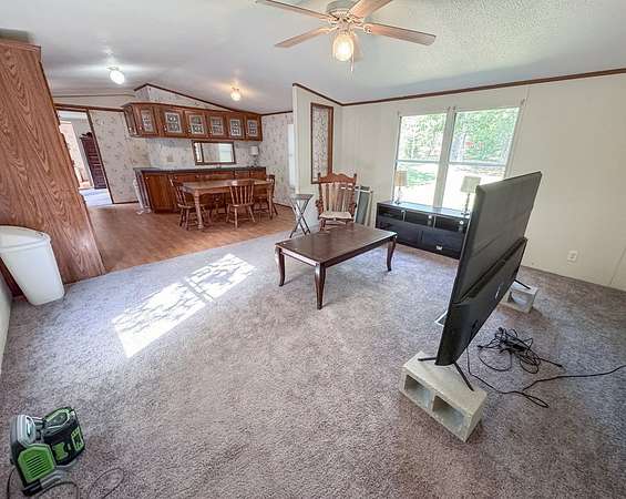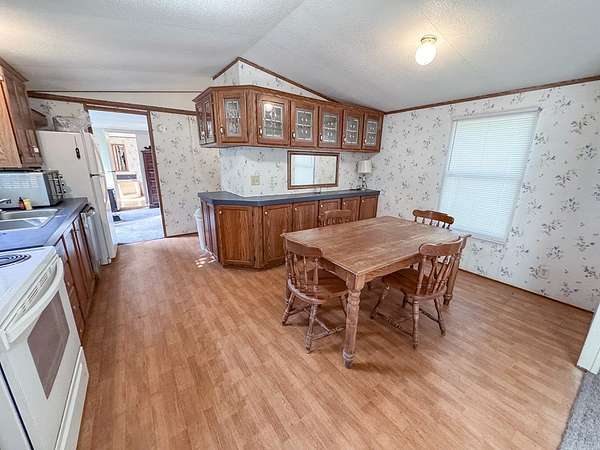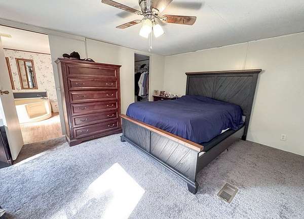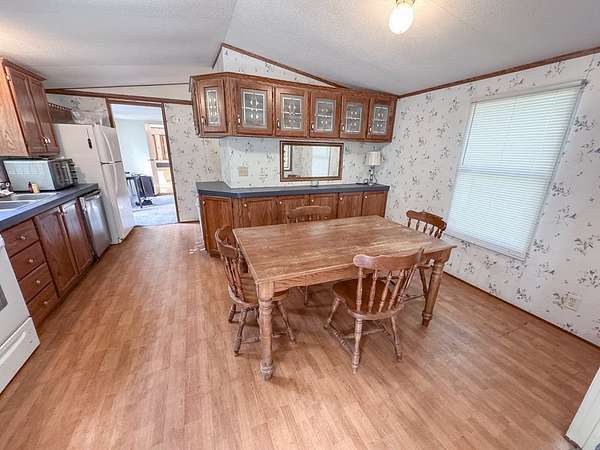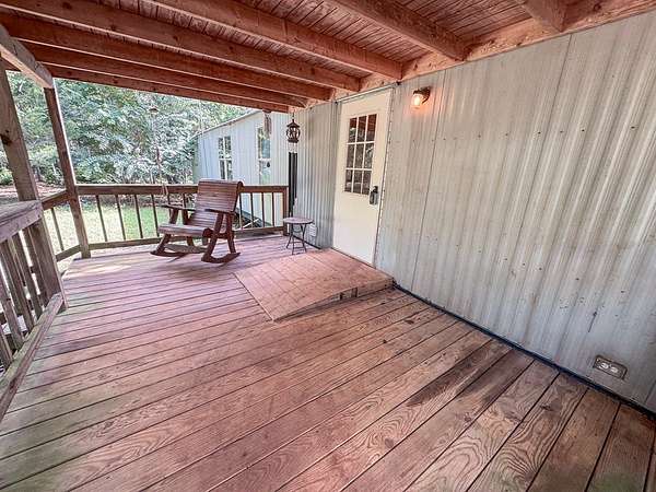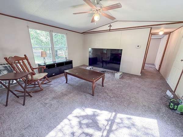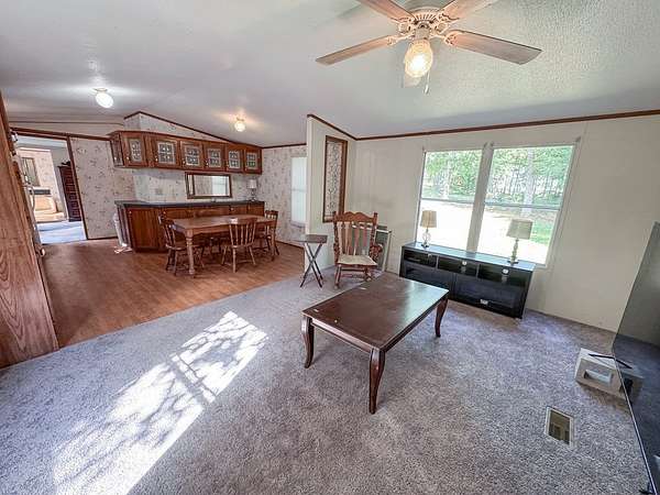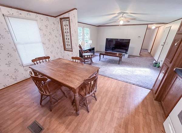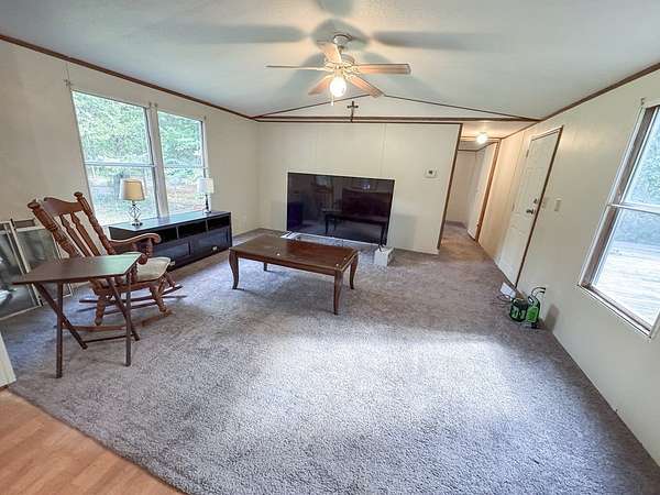 Est $546/mo2 Bedroom 2 Bath Singlewide mobile home on 3.82 Acres! Split level floorplan with open concept living/dining/kitchen. Large Primary bedroom w en-suite bath & walk-in closet. Bathroom has built-in cabinet, corner soaking tub and shower. Hall bath w/ tub/shower combo. Spacious covered front porch. Shared driveway with Plenty of additional road frontage on ACR 155. Central Air/heat. Large back patio. Elkhart School district. Thousands of pine trees were planted approx 9 years ago on the property! Advance Appt neeeded for showings please!