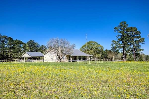 Discover 47+ acres of pure East Texas beauty in Anderson County, just minutes from HWY 287. This versatile property is approximately 50/50 cleared and wooded, currently under wildlife management—ideal for hunters, outdoor enthusiasts, or anyone looking to return the land to agricultural use, as it previously held an Ag exemption. A 30x50 shop built in 2022 with a 15' lean to, electricity, and plumbing for water offers endless utility. Additional improvements include a barn, corrals, chicken coop, a half acre pond, and a spring fed creek, creating a well rounded rural retreat. The home sits tucked away toward the back of the property, providing exceptional privacy and peaceful views from its expansive covered porches. Inside, you'll find tall ceilings, a stone wood burning fireplace, a welcoming kitchen, and spacious bedrooms—a warm and inviting layout perfect for everyday living or a relaxing weekend escape. Whether you're seeking a secluded homestead, a recreational haven, or a country getaway, this property delivers a rare blend of comfort, functionality, and natural beauty.