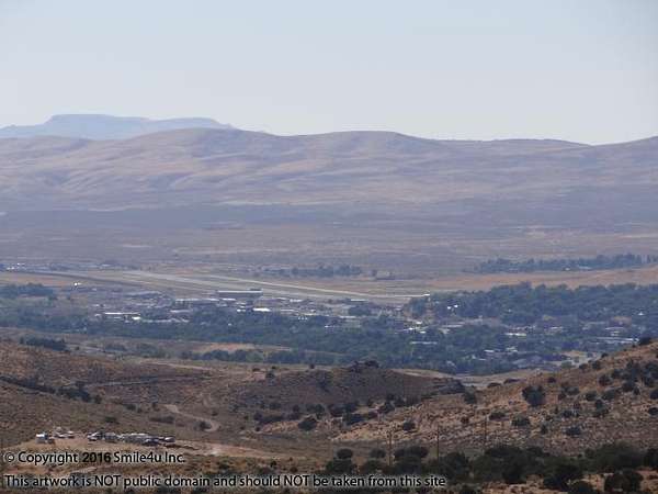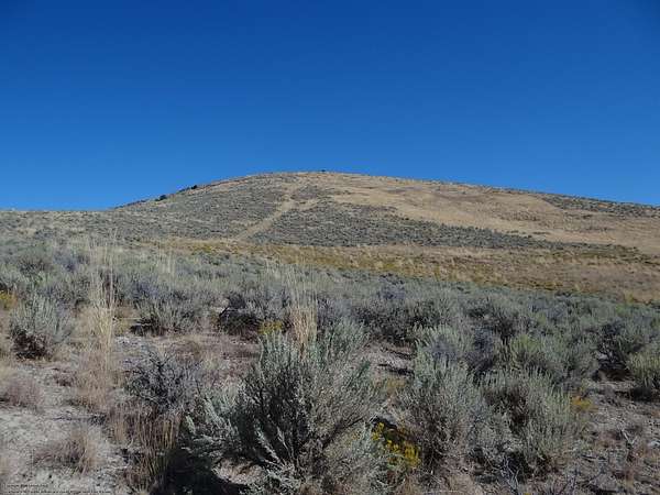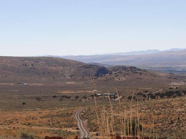 The property is nicely covered with sage, grass, pretty fall colors, some prickly pear, and pretty wheat looking plants. There are trees sprinkled about the area but I don't believe any of them are on the property. It sits up at the top of the big rolling hill and wow is it beautiful views of the Elko Hills falling down to the valley to the town of Elko! Beyond Elko are beautiful views of the Adobe Mountains. Oh it was a surprise up here and I loved the view!