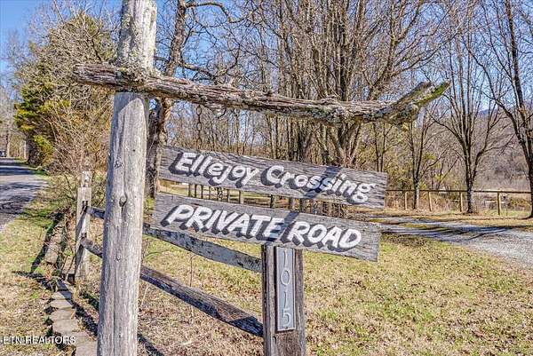Traveling from Maryville to Walland on 321, turn left onto Tuckaleechee Pike. Travel 1.5 miles to split in the road. Take left onto Ellejoy Road. Travel 1.2 miles on Ellejoy and turn right onto Country Lane. Travel .9 mile and turn right onto Ellejoy Crossing Way. This is a private, gravel road just past 918 Country Lane. Follow Ellejoy Crossing signs until the road ends - approximately 1 mile. Property is on right. Sign on property. The only home past this property is at 1211 Ellejoy Crossing Way.