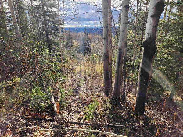 Est $913/moStunning south facing view lot on ever desirable Chena Ridge. There was a partial driveway and clearing done some years ago so it is possible to gingerly walk down and get a great sense of the view of the valley and river below and the mountains beyond.