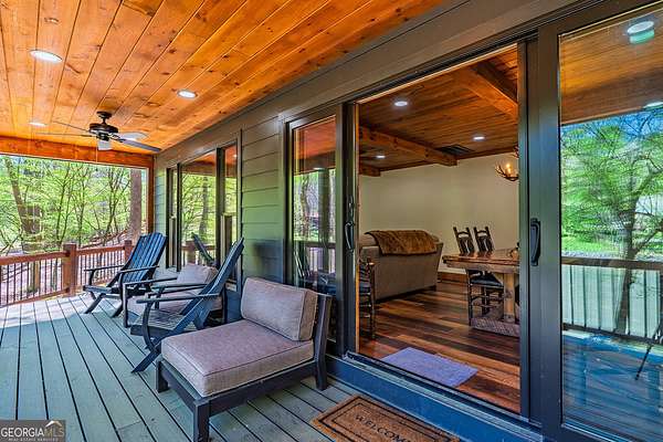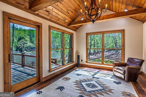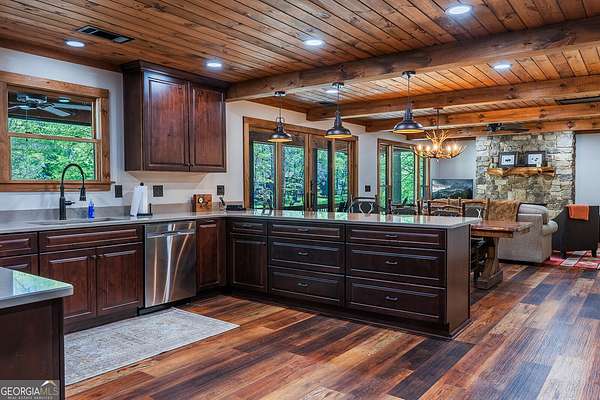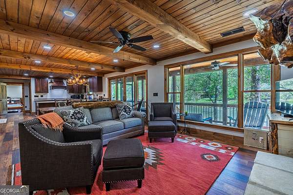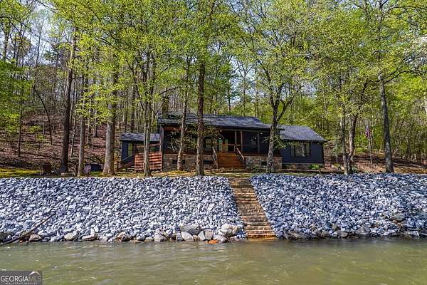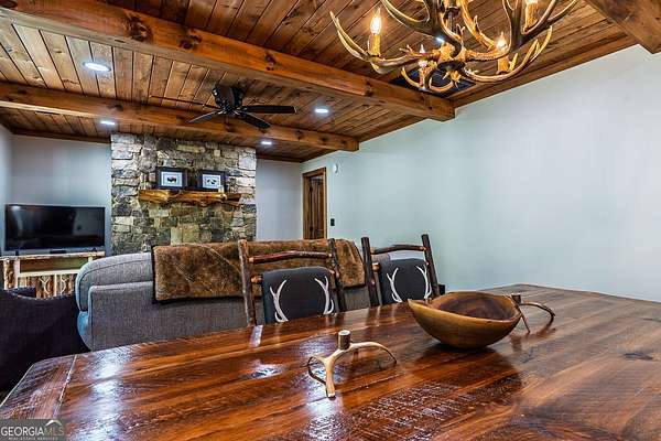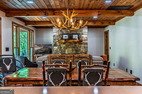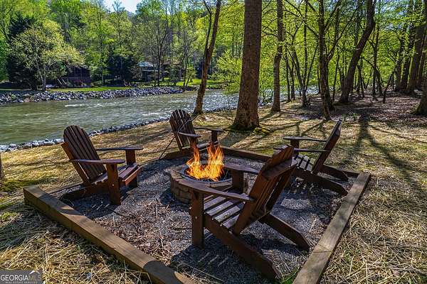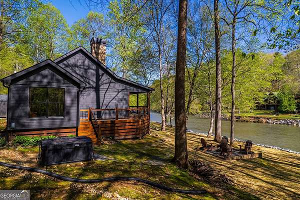 HUGE PRICE IMPROVEMENT! Seller is motivated and ready to sell! This extraordinary riverfront cabin has been completely rebuilt from the studs up-everything is brand new. The seller opened up the main living space by removing the center wall, creating a spacious, airy feel anchored by a stunning, oversized stone wood-burning fireplace. A brand-new bedroom and bathroom have been added, and all ceilings have been beautifully finished with wood for a warm, rustic touch. The expansive kitchen is a dream, featuring stainless steel appliances, quartz countertops, and an abundance of custom cabinetry. The primary suite includes a bright, open sitting area-perfect for enjoying a quiet morning coffee. All three bathrooms, including the newly added one, have been fully renovated with thoughtful, high-end finishes. Nestled on 1.93 acres, the property boasts over 450 feet of pristine river frontage. The front porch is partially screened in, offering a serene spot to unwind and listen to the soothing sounds of the river. Outdoor amenities include a riverside dock, a large firepit, a hot tub, a rear stone patio, and a separate workshop/storage building. Located at the end of a private road, this one-of-a-kind gated retreat offers both privacy and peace of mind. A truly special property-don't miss your chance to experience it.