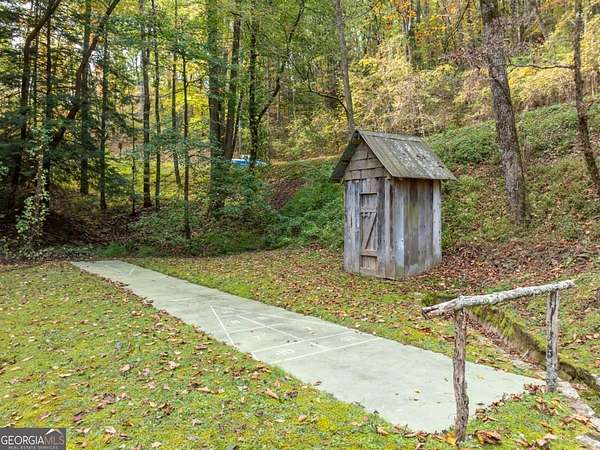 Ellijay - From Intersection of Old Hwy 5 and Tails Creek Rd/GA-282 (Dairy Queen) take Tails Creek Rd 8.7 mi to RIGHT on Tails Creek Church Road (Dollar General). Go 1.5 miles and turn Left to stay on Tails Creek Church Rd. Go approx 2.5 mi to Utana Bluffs Gate. Lot is first on the Right once you pass through the gate.