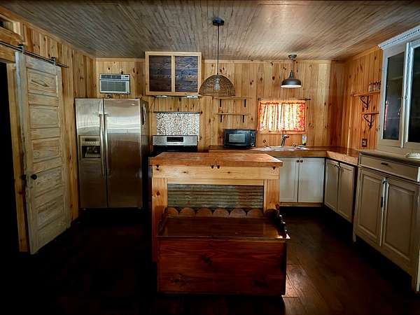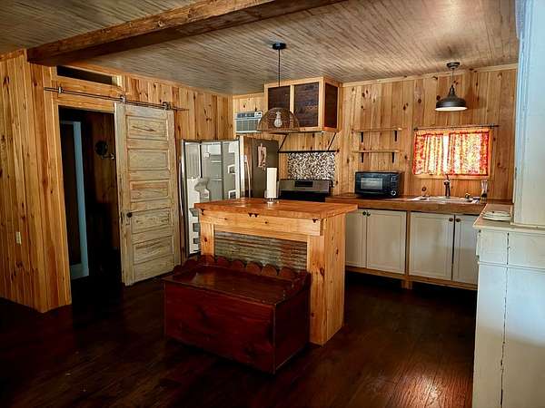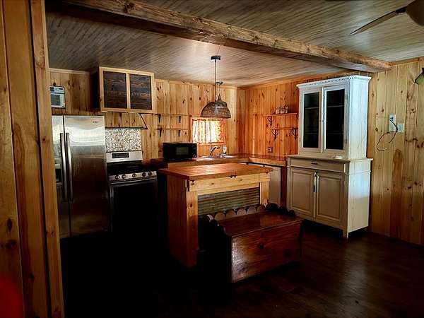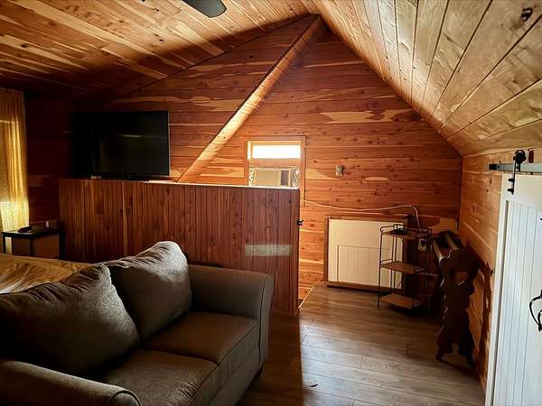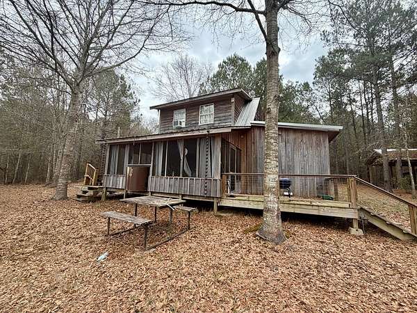 This lakefront cabin property is now on the market. Nestled on 18 acres in Jones County, the two-bedroom, one-bath cabin boasts spectacular views. The scenic approach is marked by a gated entrance and picturesque driveway. Inside, the cabin features a bedroom and a combined living room and kitchen with a center island and refrigerator. An upstairs loft bedroom offers additional storage. The expansive deck and screened-in porch with gas fireplace provide an ideal setting for relaxation and entertainment. A covered carport with storage buildings and property trails offer ample opportunities for outdoor activities, and the entire lake is included in the sale. With a potential building site on the main road and nearby electricity, this property offers flexibility. Contact us to arrange a viewing for this unique property.