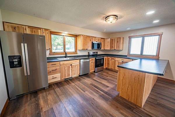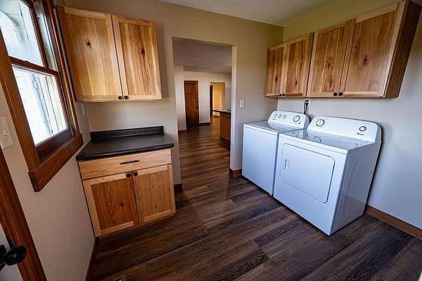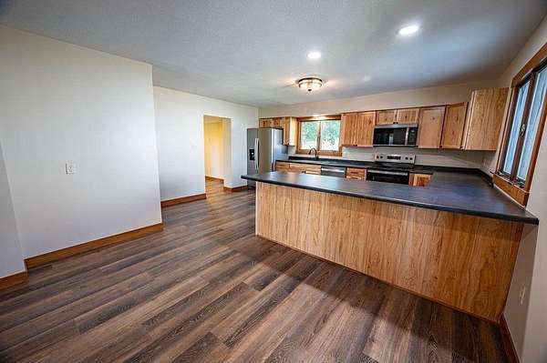Set against this peaceful countryside backdrop, this charming 13-Acre; fully remodeled Farm House offers the perfect blend of rural tranquility and modern comfort!!! Standout Kitchen boasts Hickory Cabinets, Breakfast Bar, SS Appliances & Vinyl Plank Flooring leading into Living Room which leads out to Front Deck overlooking Pasture. Back Deck entrance conveniently leads into the Laundry/Mudroom! Upper Level consists of 3rd Bedroom & extra Bonus Room for Office, Exercise or Game Room. Outdoors is a Dream Land with a 120x40 Pole Shed consisting of 56x40 Gravel area w/19x14' & 14x12' Doors, 40x24 Heated Shop w/Woodstove, Loft, One-ton Chain Hoist, Floor Drain & 16x12' Door, 40x40 1/2 Concrete area w/16x7' & 14x12' Doors and a 24x20 Heated Woodworking shop w/Loft along with a classic Barn w/32x10' Lean-To & 20x14 Granary, perfect for all your animals! This Property delivers rural charm, comfort and timeless appeal!!!