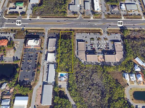 The subject vacant parcel is Westward adjacent to Holiday Plaza in Miramar Beach, Florida.