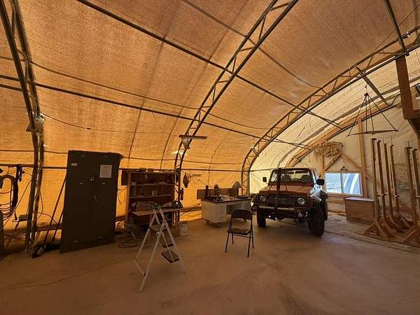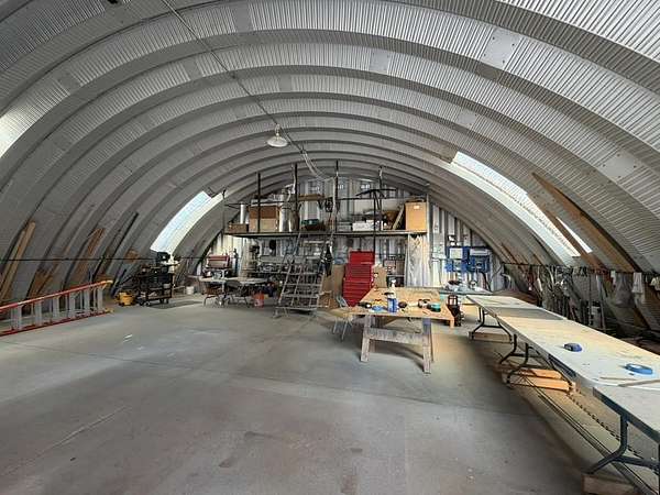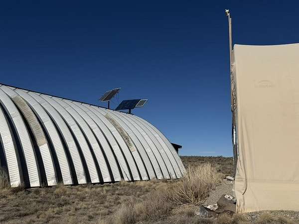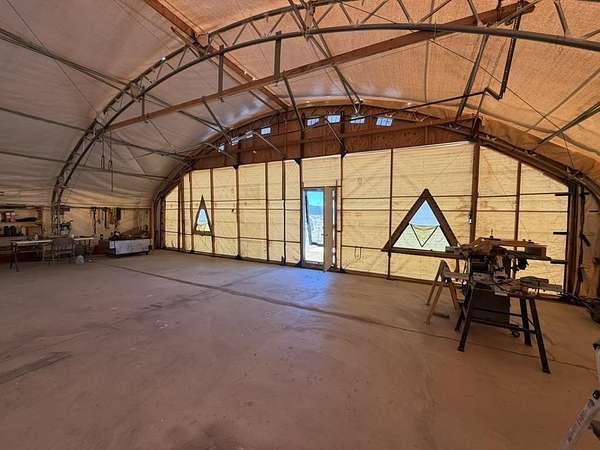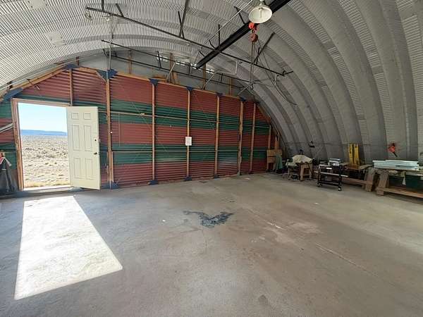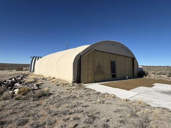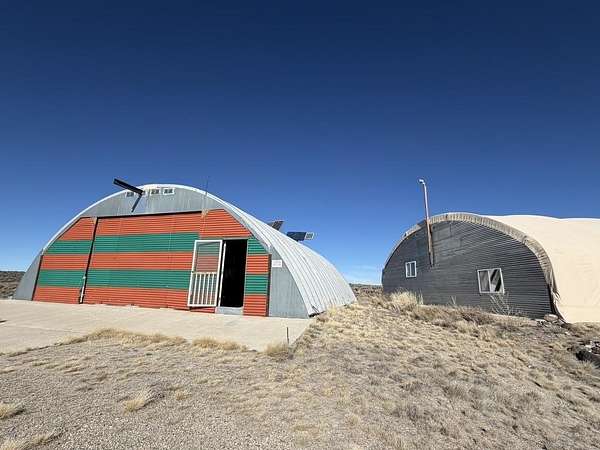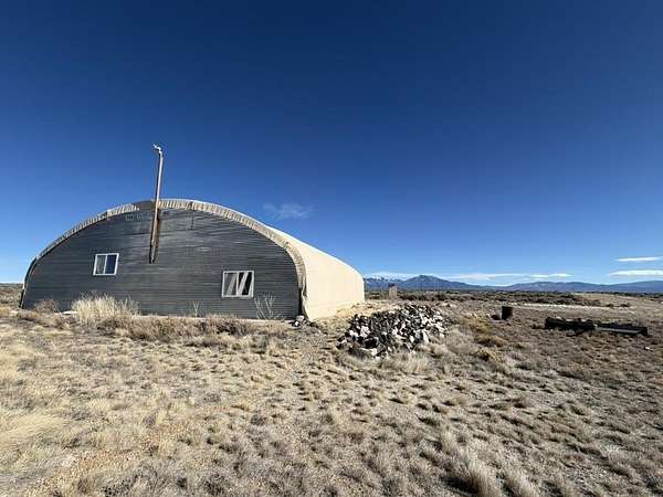 Dream work space/shop: ever wanted to build a plane? This could be the place to do it. 17 Acres of Land with two runways : One North/South and one East/West. Two Quonset huts/airplane hangers with concrete slabs, solar power, wind generator, and storage shed. These shops were the work space of a builder/engineer/pilot. 360 degree views. Less than 20 minutes to Taos Plaza.